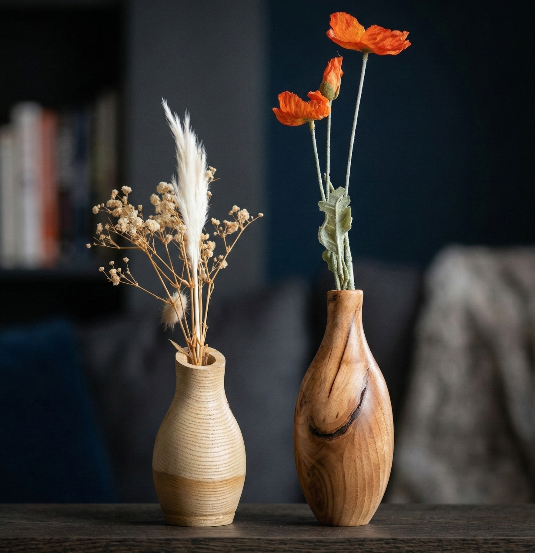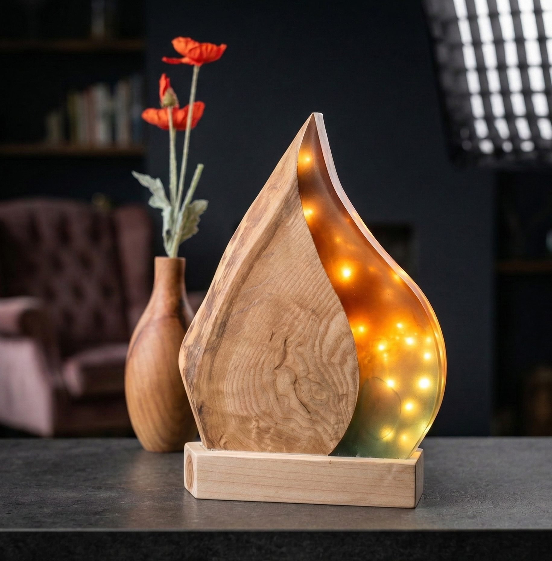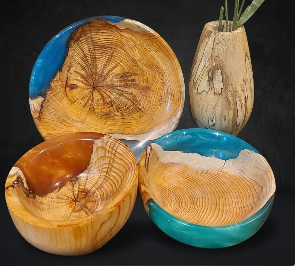 Signature lathe turned pieces, highlighting the beauty and natural grain of the wood.
